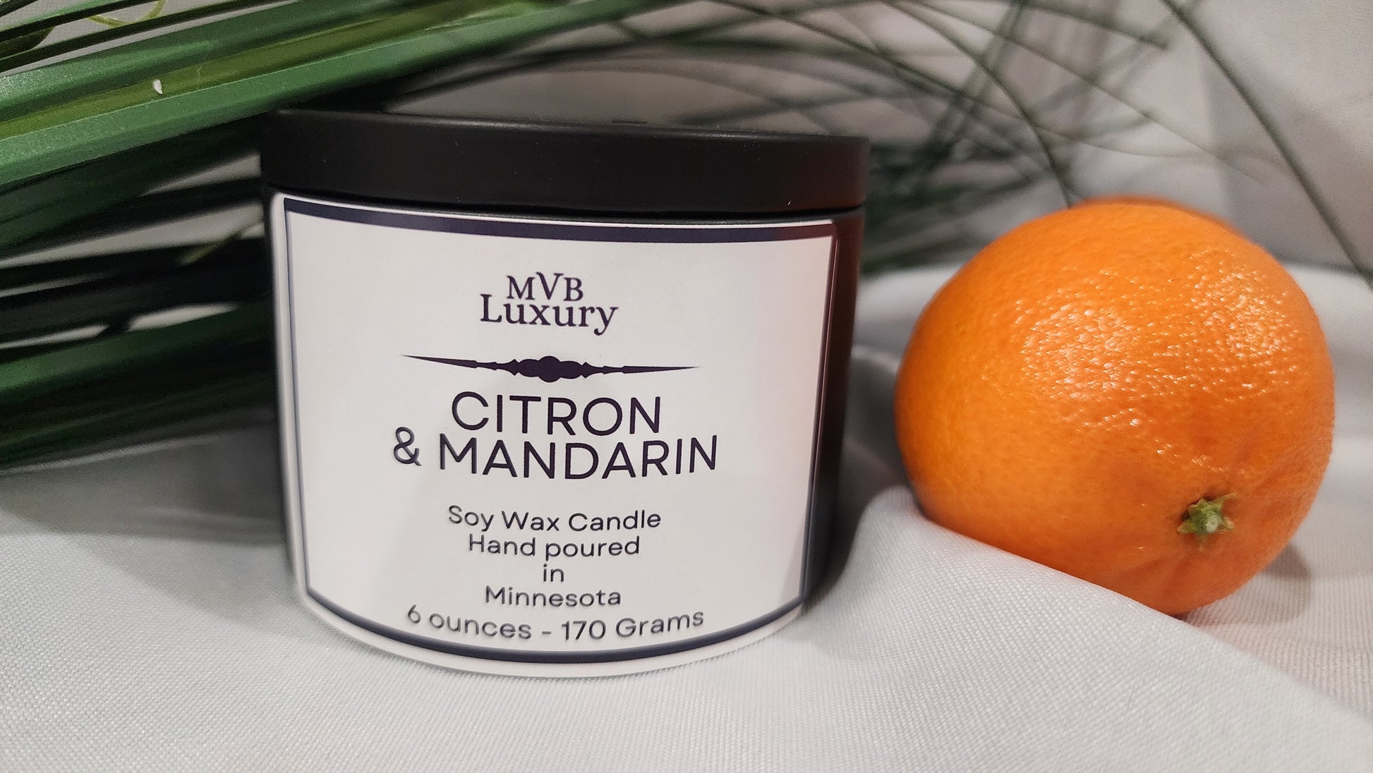 Our 6-ounce tin candle is yours in a black matte tin with tight fitting lid. Citron and Mandarin is a vibrant citrus fragrance that fits beautifully into any indulging you have plans for! Top notes of grapefruit, lemony citron, and mandarin blend with touches of peach, orange, and delicate cyclamen for an irresistible burst of brightness. A hint of vanilla and citrusy bright musk finishes off this super fresh scent. Lemon, tangerine, orange, and grapefruit reinforce the intense juiciness.